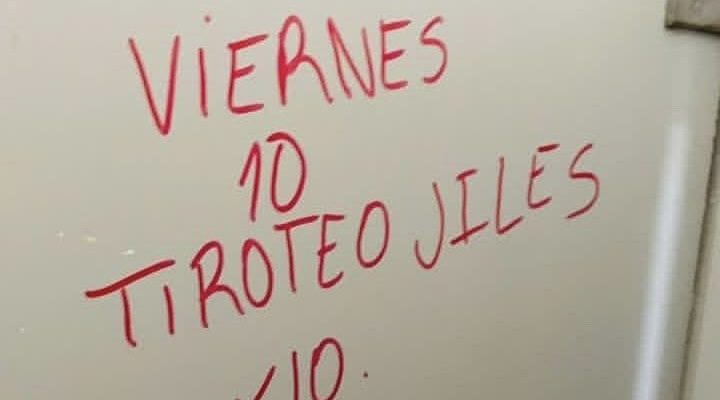 Resulta bastante extraño que este fenómeno se esté repitiendo desde hace unos 15 dias en Chile, con mensajes similares y con modus operandi bastante parecidos. “Tiroteo” es la palabra más utilizada en estas amenazas escolares, principalmente en liceos. Establecimientos de la región del maule también han visto involucrados en hechos graves como la detención de un menor con un arma de fuego en las afueras de un colegio curicano. En los últimos días ocurrió otro episodio en el Liceo de Licantén y ahora nos reportan en exclusiva para Analiza Maule lo que sería un mensaje de amenaza escrito en el liceo de Teno, provincia de Curicó, donde se lee una amenaza de tiroteo.